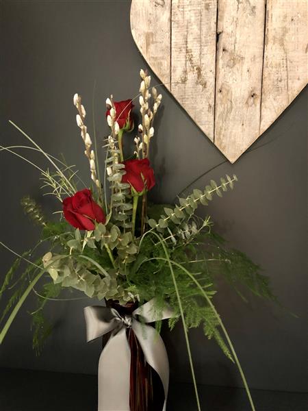 3 Red Roses in Glass Vase