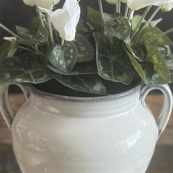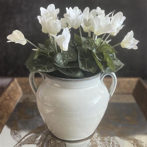Lovely Ceramic Pot with Handles potted with Faux White Cyclamen Plants