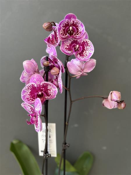 Stunning 2 stemmed Orchid in Glass Container finished with moss & Gold Birch Twigs